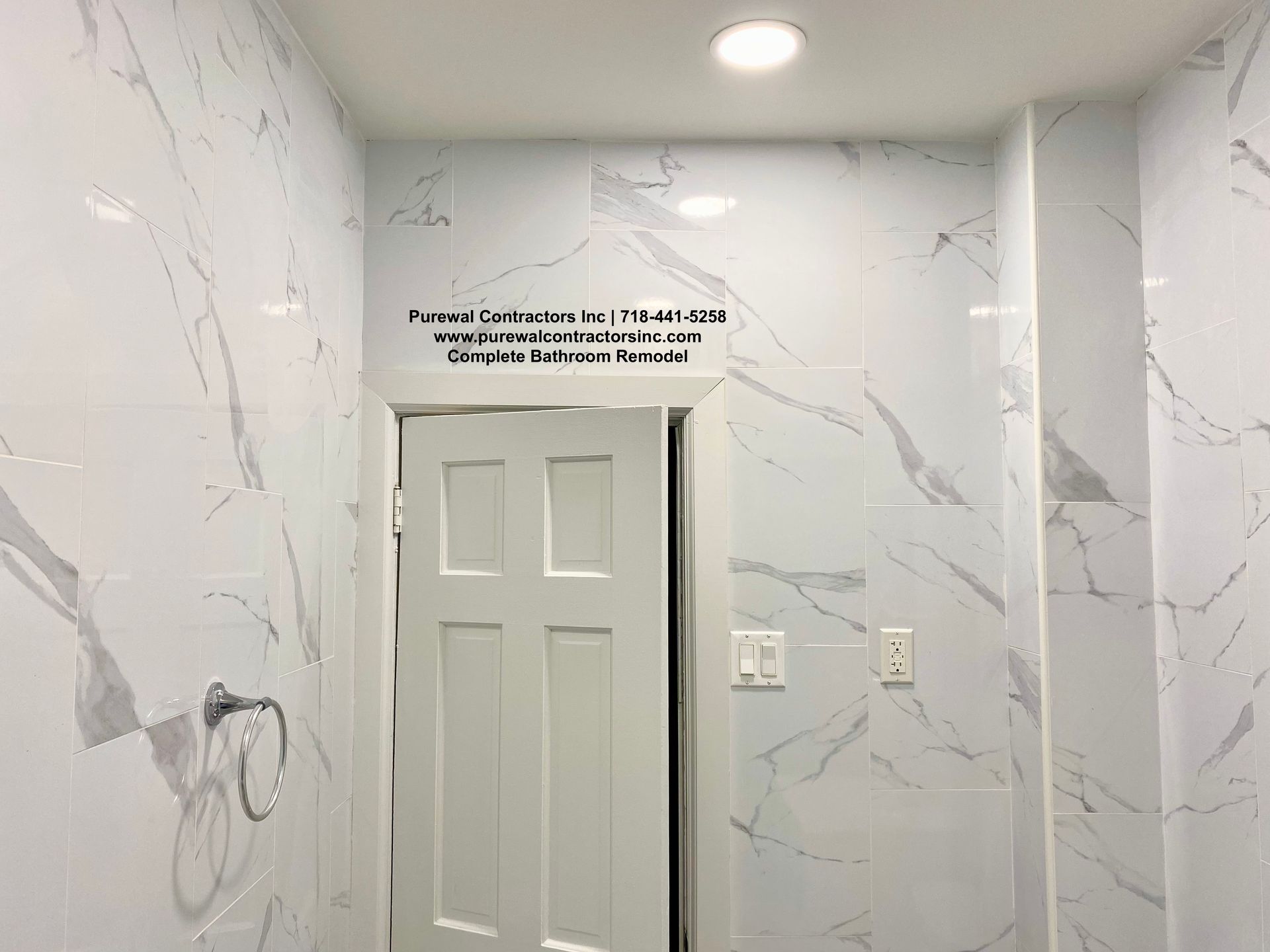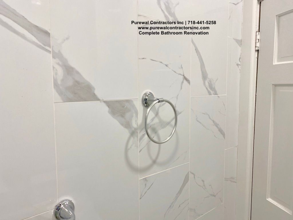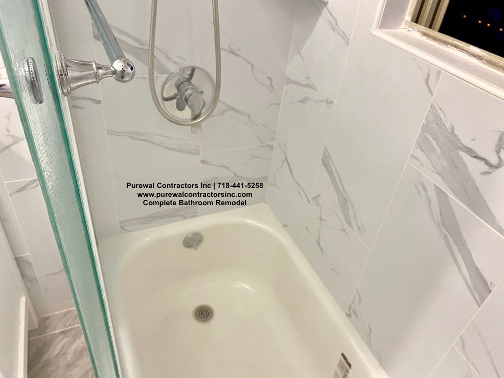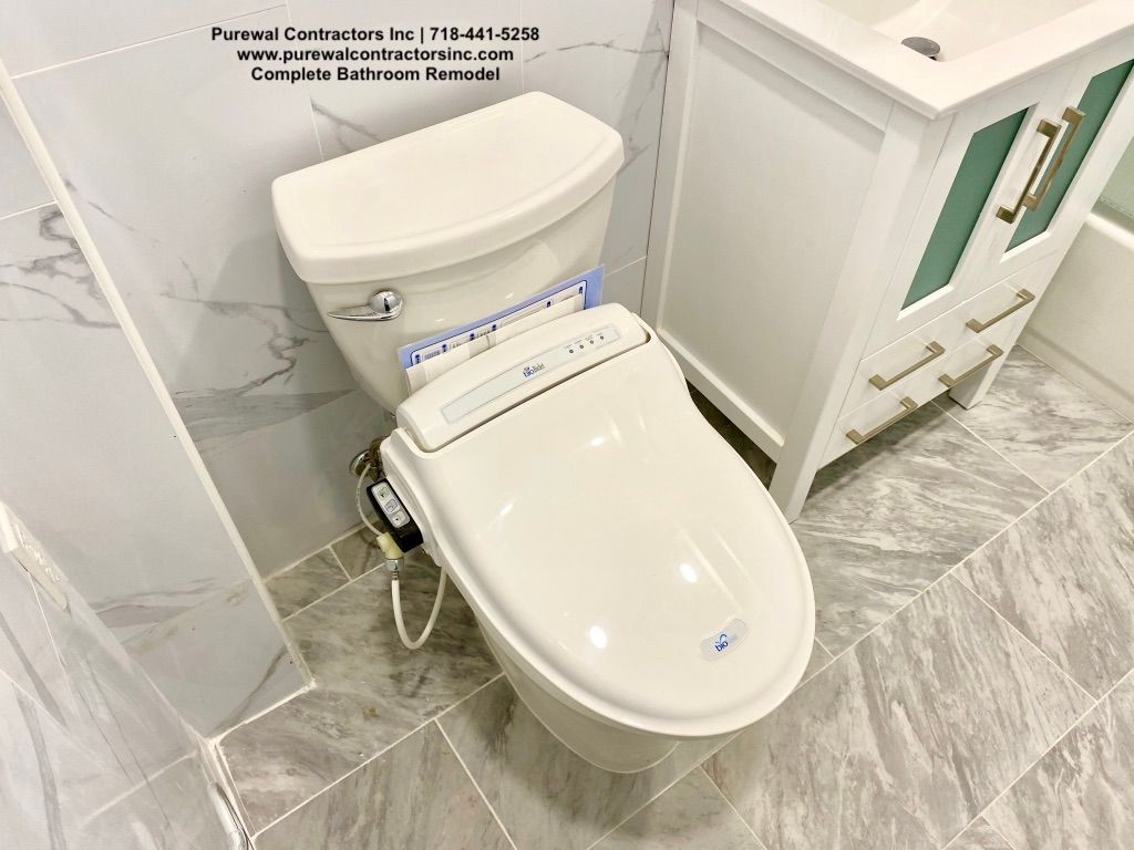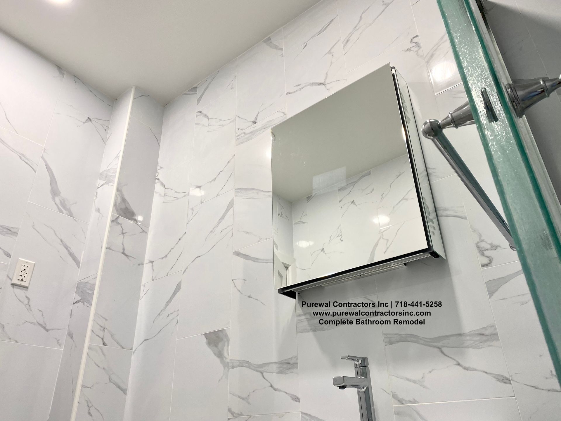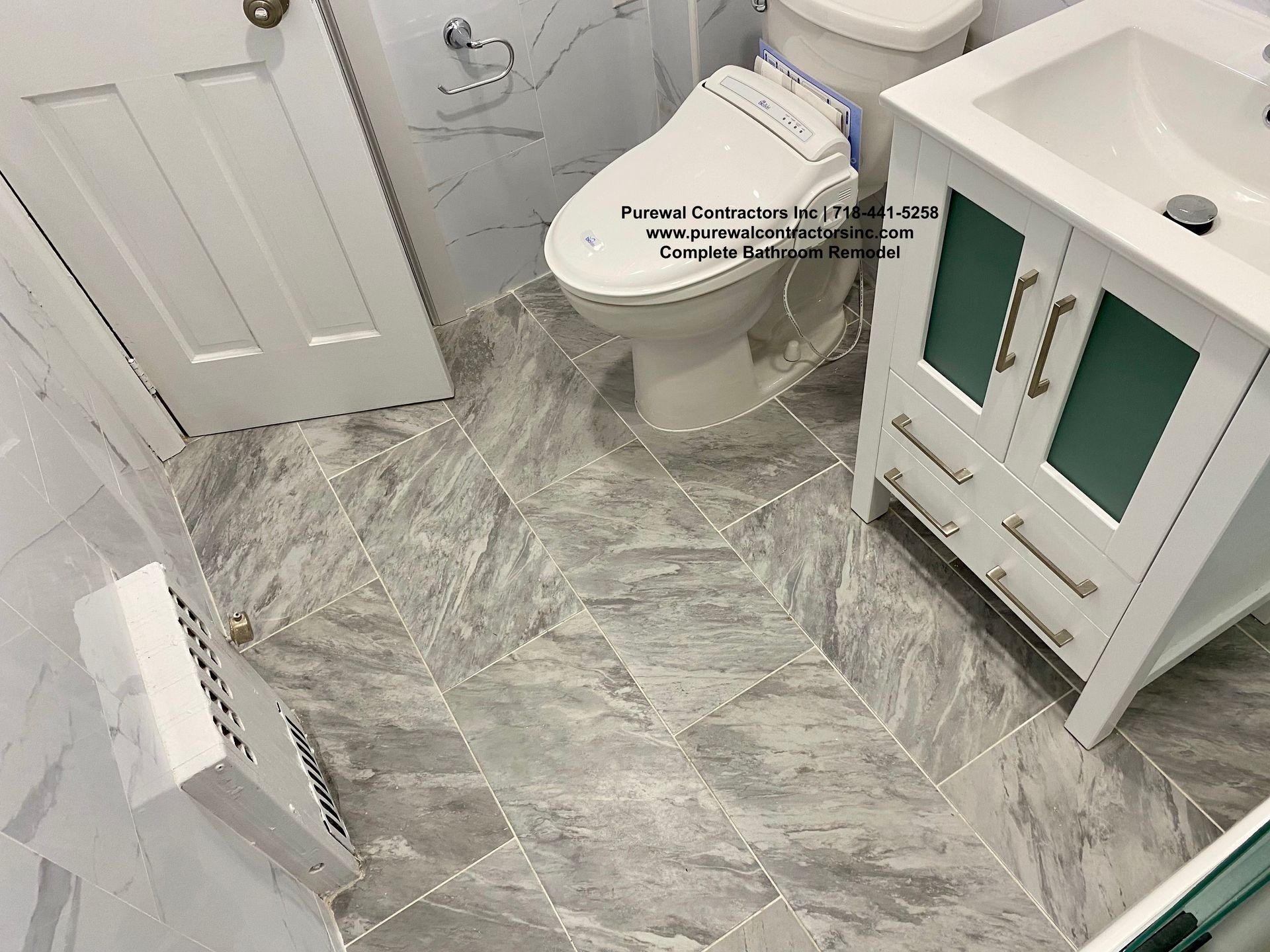 We turn this homeowner dingy bathroom into luxurious living in the heart of Glendale Queens in this pristine Home with special additions like a Grohne Shower System, Bidet Toilet, Vertical Stacked Tiles on the Wall and Floor. Floor to Ceiling Tiles, Truly a Gut Renovation, with New Plumbing and Electrical, A Luxarious Bathroom built on a Budget